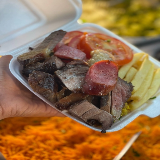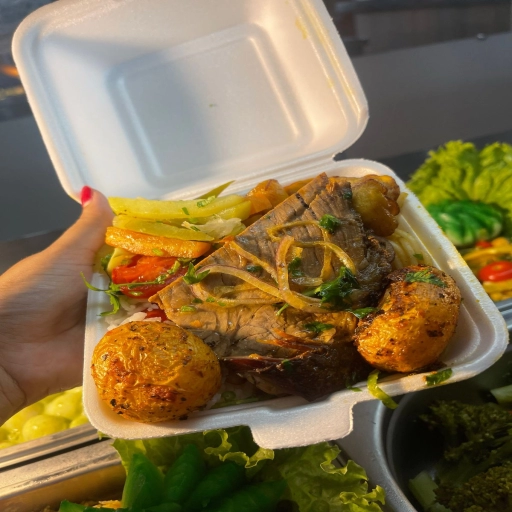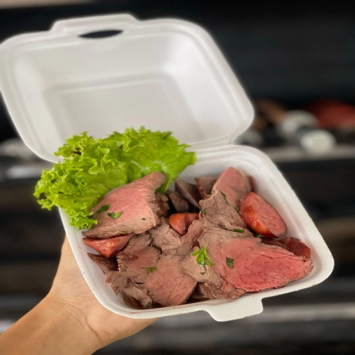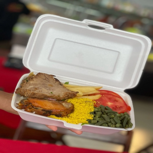 Arroz integral (80g), feijão em calda (120), frango grelhado(120g), alface, tomate, tabule, beterraba ralada, cenoura r... Ver completo
